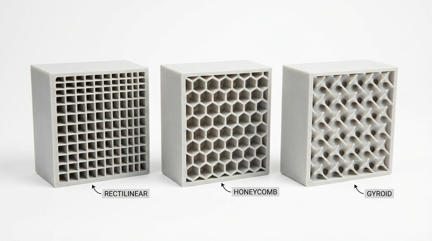 Infill is the internal structure printed inside the solid walls of your model. It serves three primary purposes: