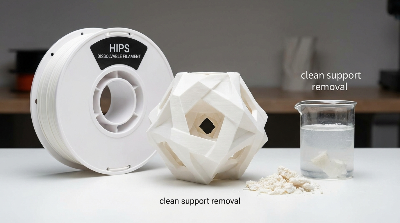 For simple prints with easy-to-access supports, mechanical removal with breakaway supports is still faster and cheaper. HIPS really shines on prints with internal cavities, trapped supports, or surfaces where support marks are unacceptable.