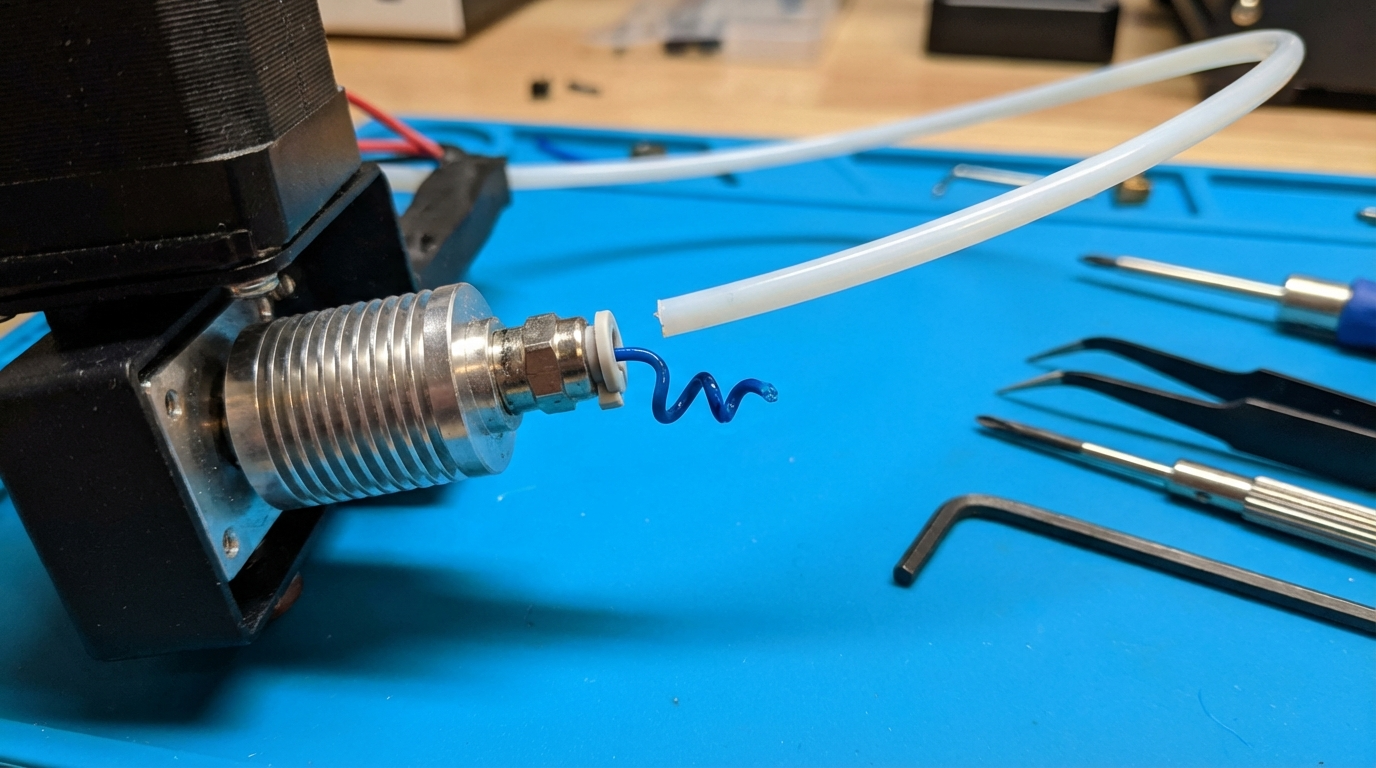The gap we’re talking about is tiny — sometimes less than 0.5 mm. But that microscopic space between the end of the PTFE tube and the back of the nozzle creates a pocket where molten filament accumulates, partially carbonizes, and eventually restricts or blocks flow entirely. It’s insidious because the symptoms develop gradually. Your prints slowly get worse over weeks or months, and you blame everything else before discovering the real culprit.